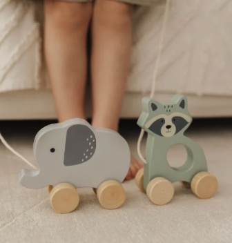 A woodland-themed companion to the Elephant, featuring a soft green finish and classic pull-along styling.